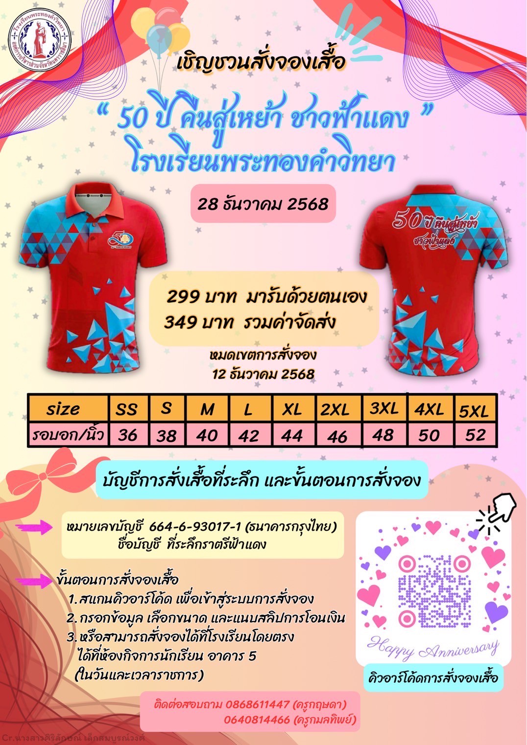 ผังโต๊ะจีนงานราตรี ฟ้า-แดง วันที่ 28 ธันวาคม 2568 ศิษย์เก่าสามารถสั่งจองโต๊ะและสลิปการโอนเงิน