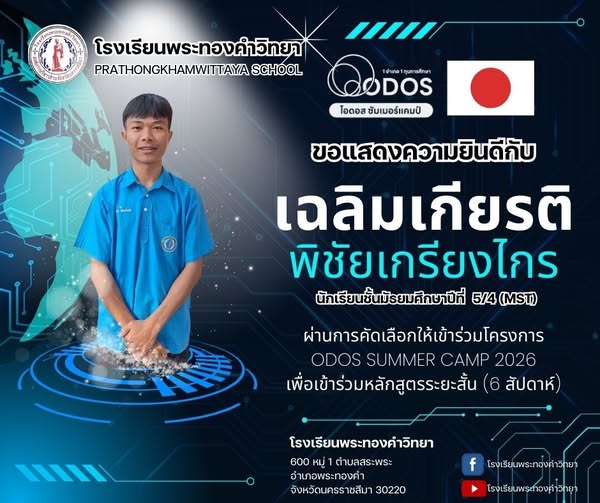 แสดงความยินดีกับนักเรียนได้รับคัดเลือกเข้าร่วมโครงการ ODOS 2569 JAPAN